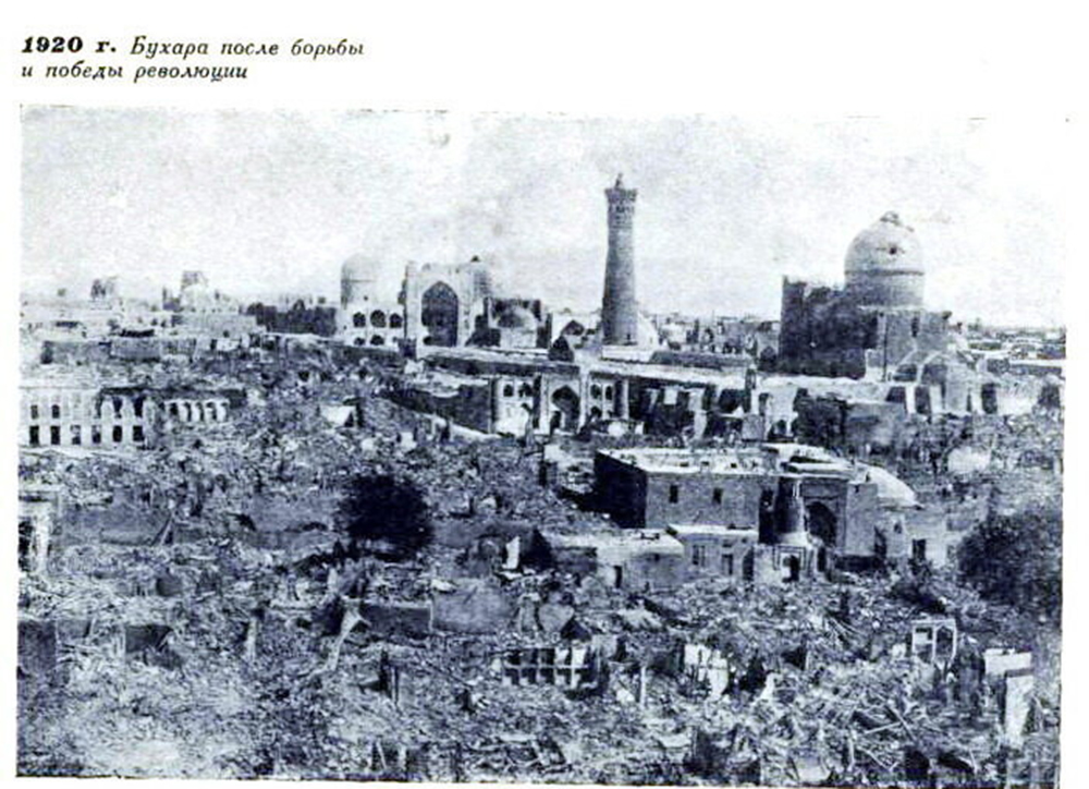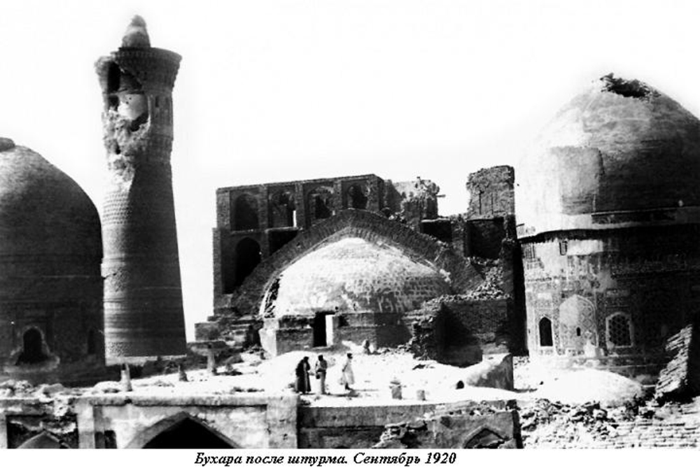 “The fortress of Old Bukhara was taken today by the combined efforts of Red Bukhara and our units. The last stronghold of Bukhara’s obscurantism and Black Hundredism has fallen. Over Registan waves the victorious red banner of the world revolution.”