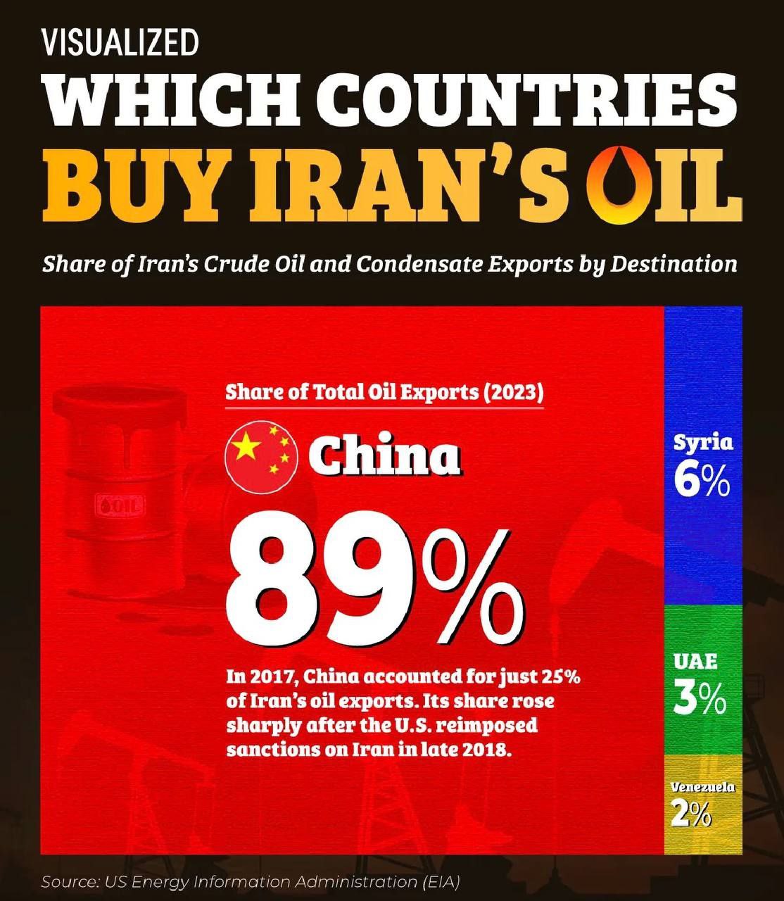 89% of Iranian oil was going to China.
