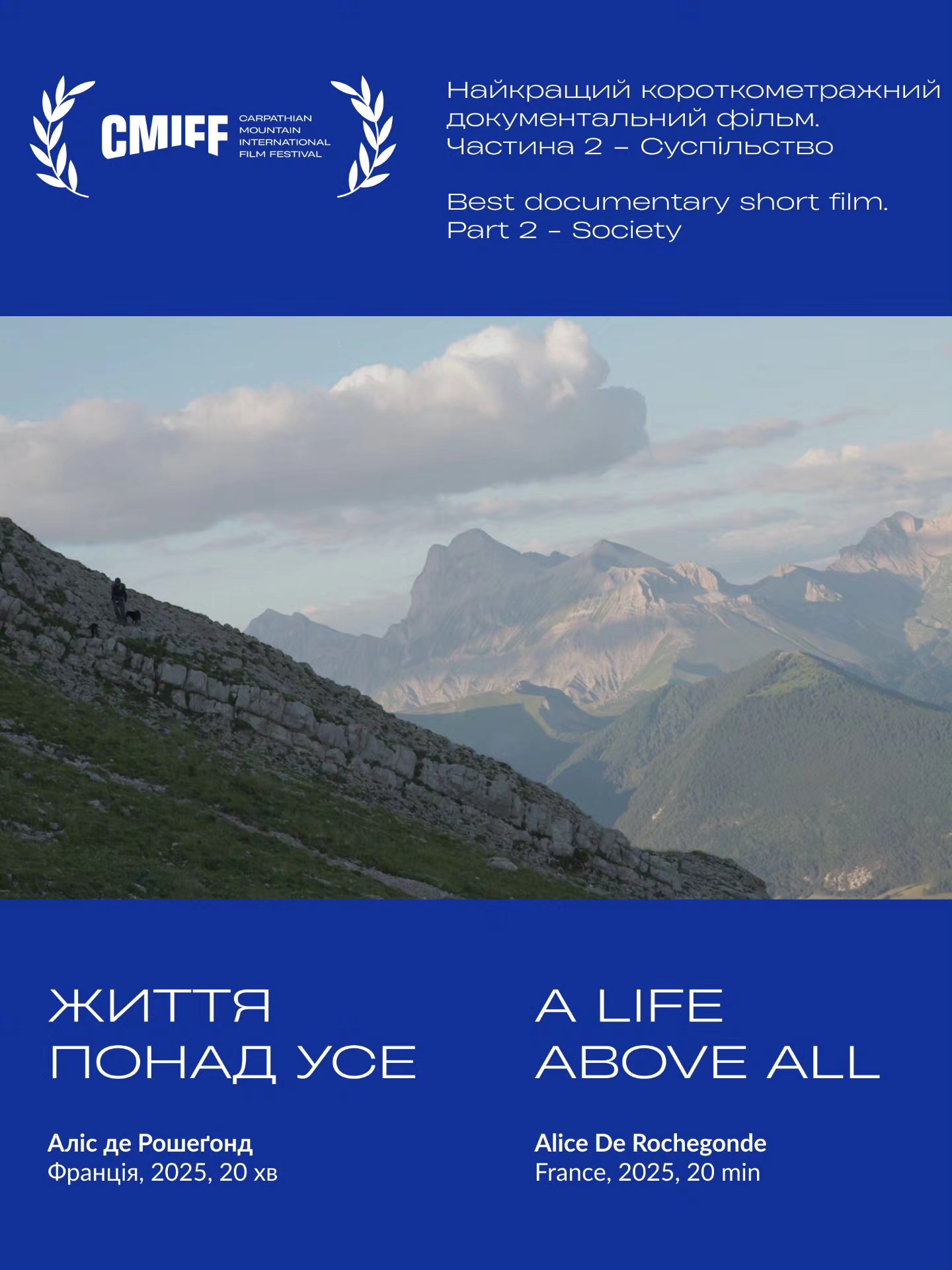 The Best Short Documentary in the “Society” category was Life Above All by director Alice de Rochegonde (France, 2025), and in the “Sport” category—the film Minus 103 Degrees by German director Feline Gerhard.