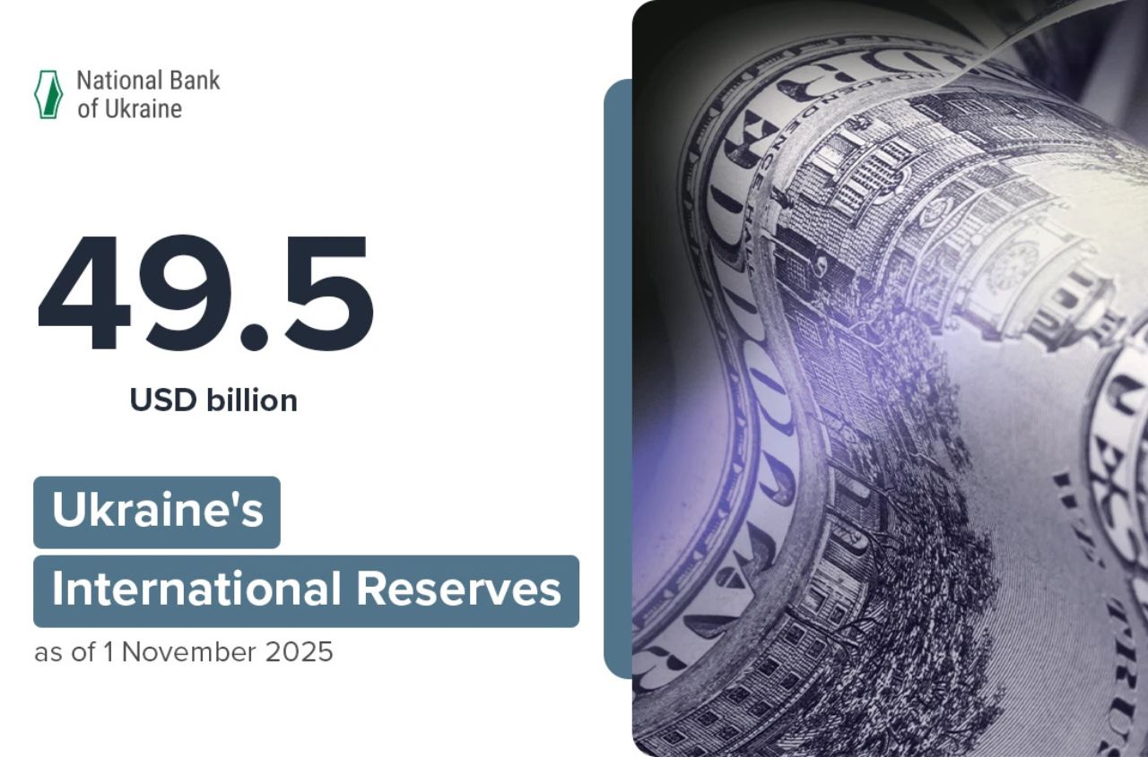 Ukraine’s international reserves increased by 6.4% in October 2025, reaching 49.52 billion US dollars as of November 1, according to the National Bank of Ukraine (NBU).