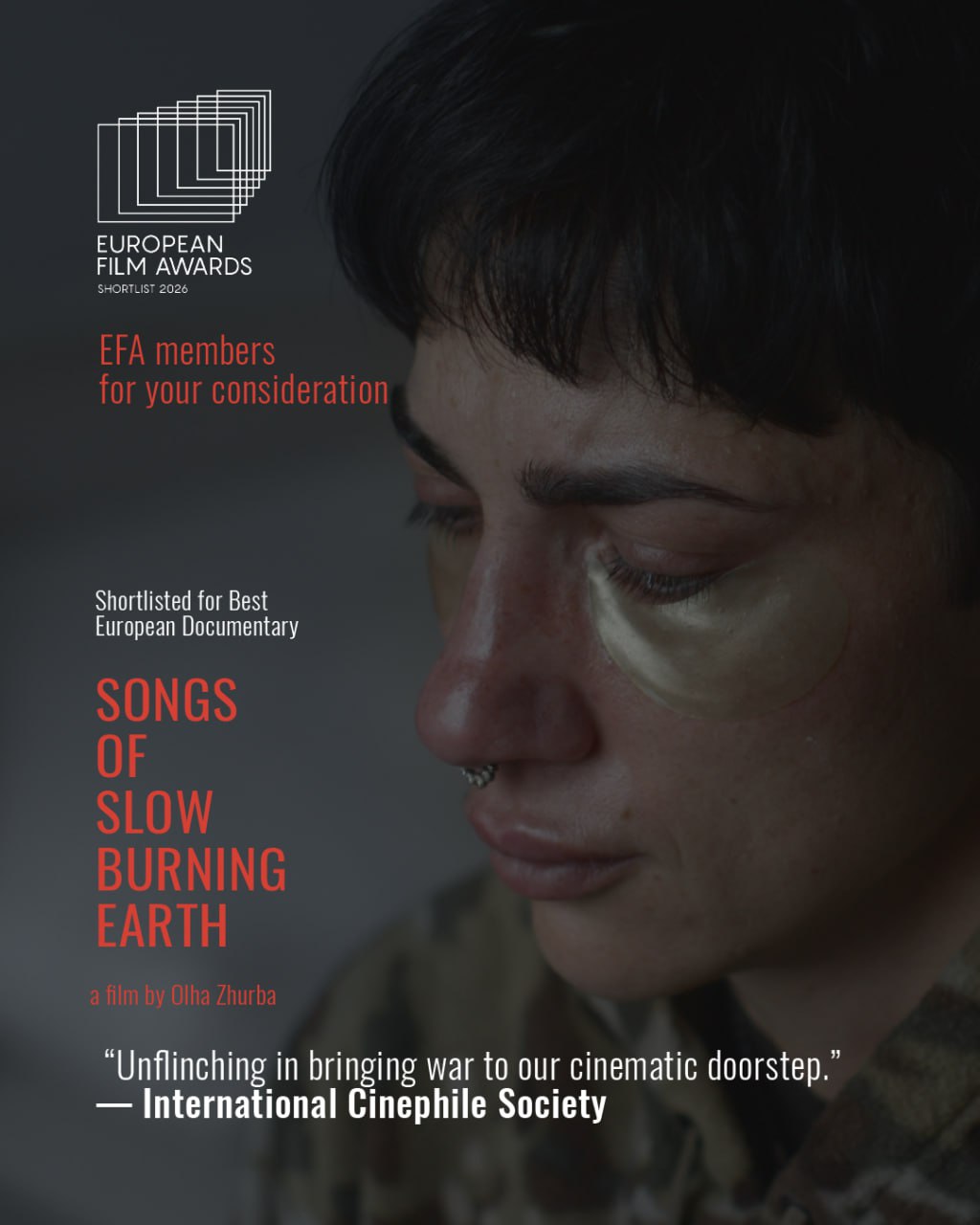 The documentary film "Songs of Slow Burning Earth," directed by Olga Zhurba, has been shortlisted for the European Film Awards in the category of Best Documentary.