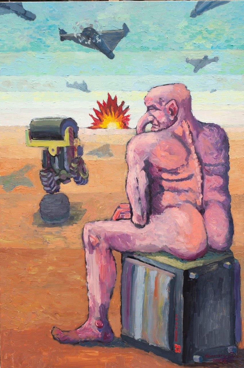 "Laying asphalt in the shadow of a thousand Shahed136", 150/100 cm, oil on canvas, 2022