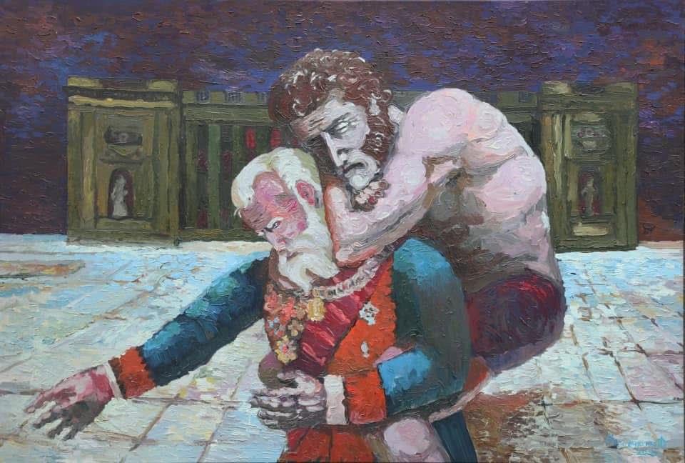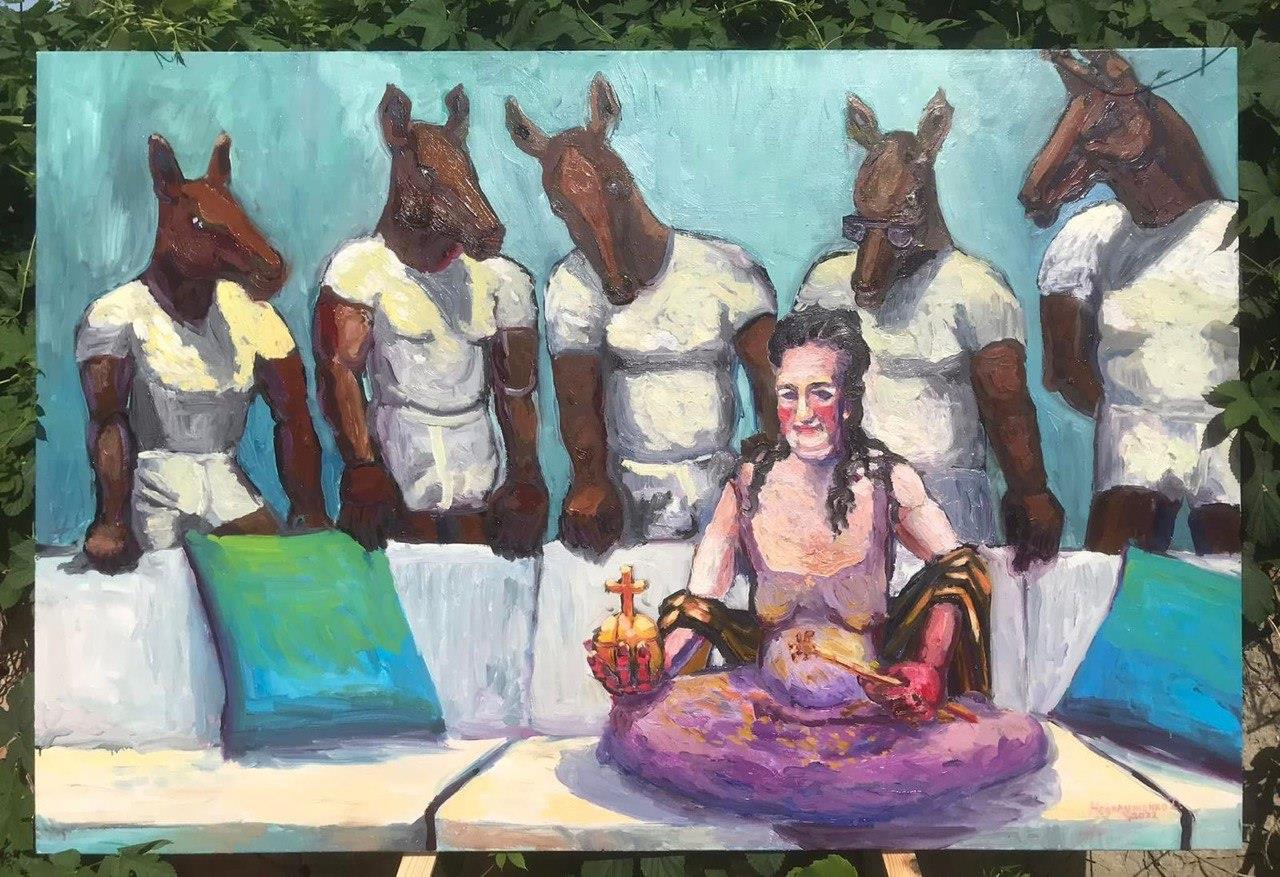 "Pushkin strangles Marazli", 80/100 cm, oil on canvas, 2021